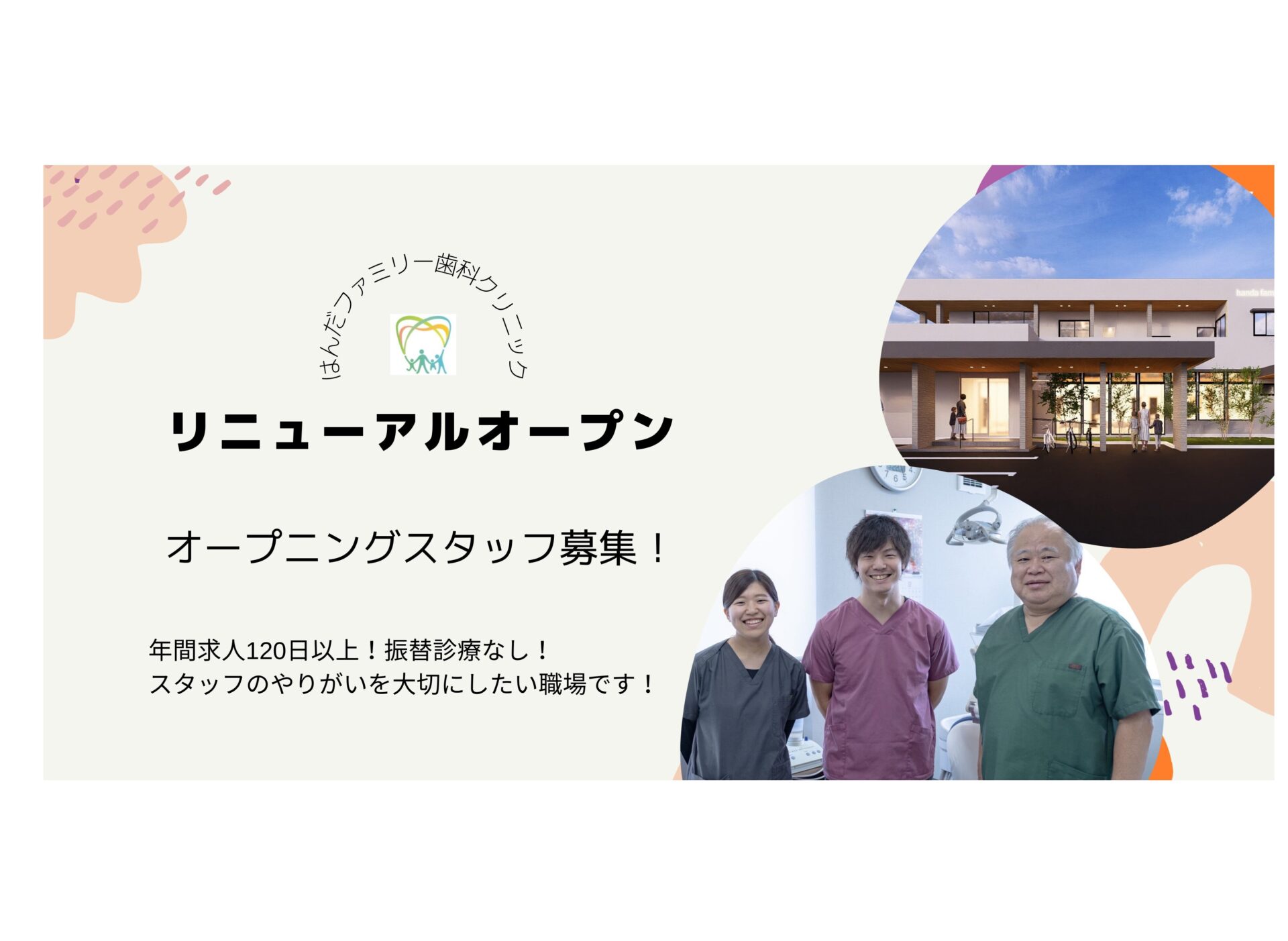 はんだファミリー歯科クリニックとしてリニューアルオープン致します。